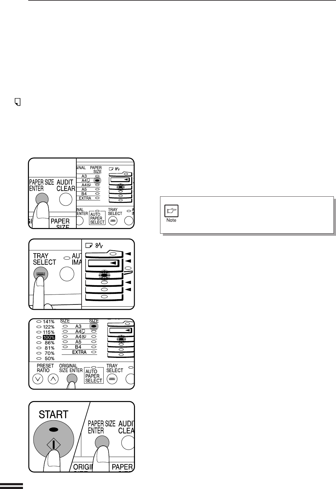 Use the ORIGINAL SIZE ENTER key to select the paper