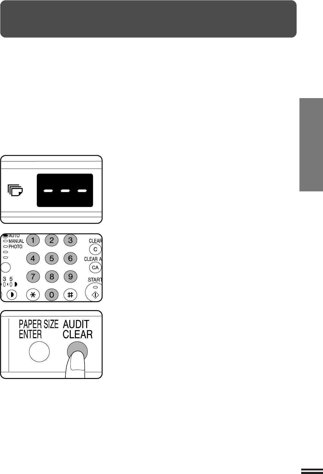 If the copier has been programmed in the auditing mode, “–––” will appear