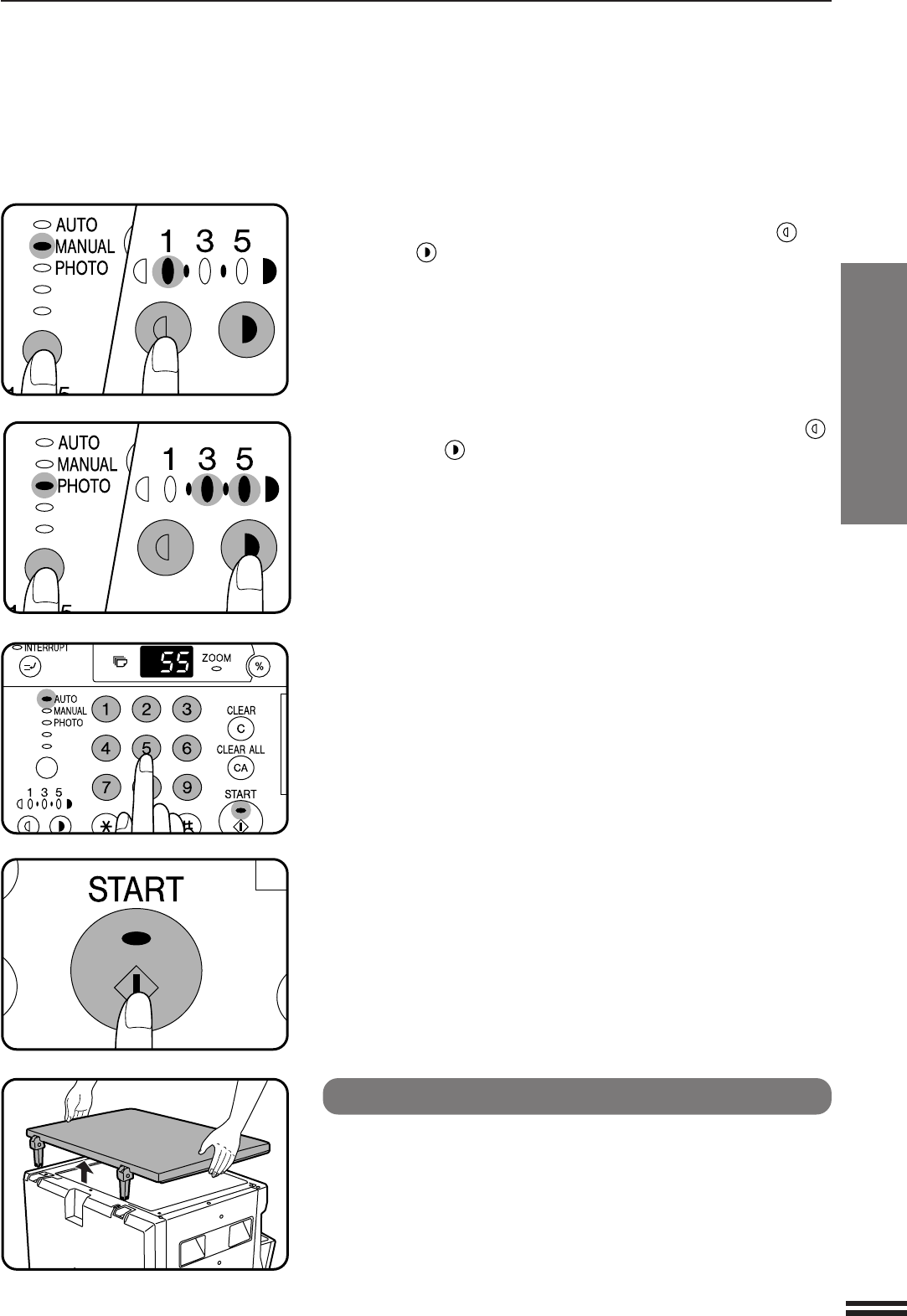 For manual copy density adjustment, press the AUTO/MANUAL/