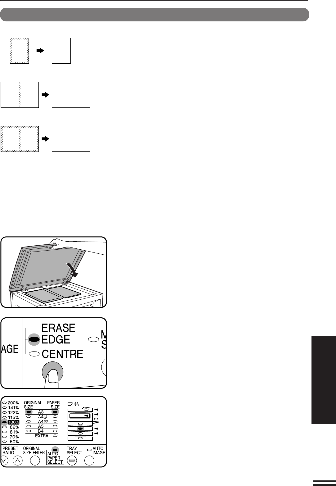 This copier has an edge erase mode and a centre erase mode.