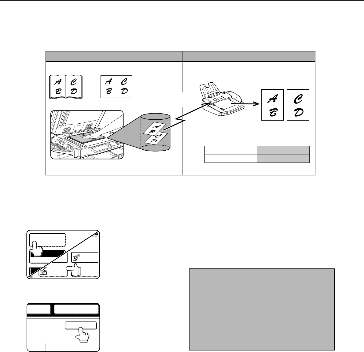 When an open book is scanned and faxed, you can use this function to divide the two open pages of the book into two