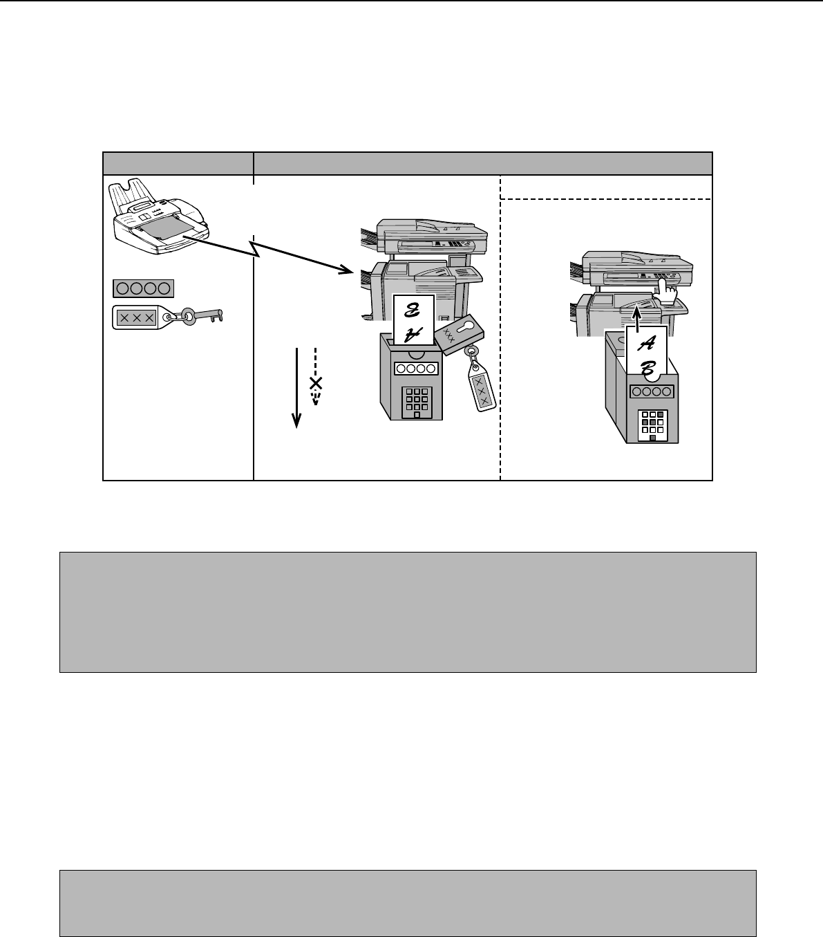This function is used to send confidential documents. The sub-address and passcode programmed for a memory box