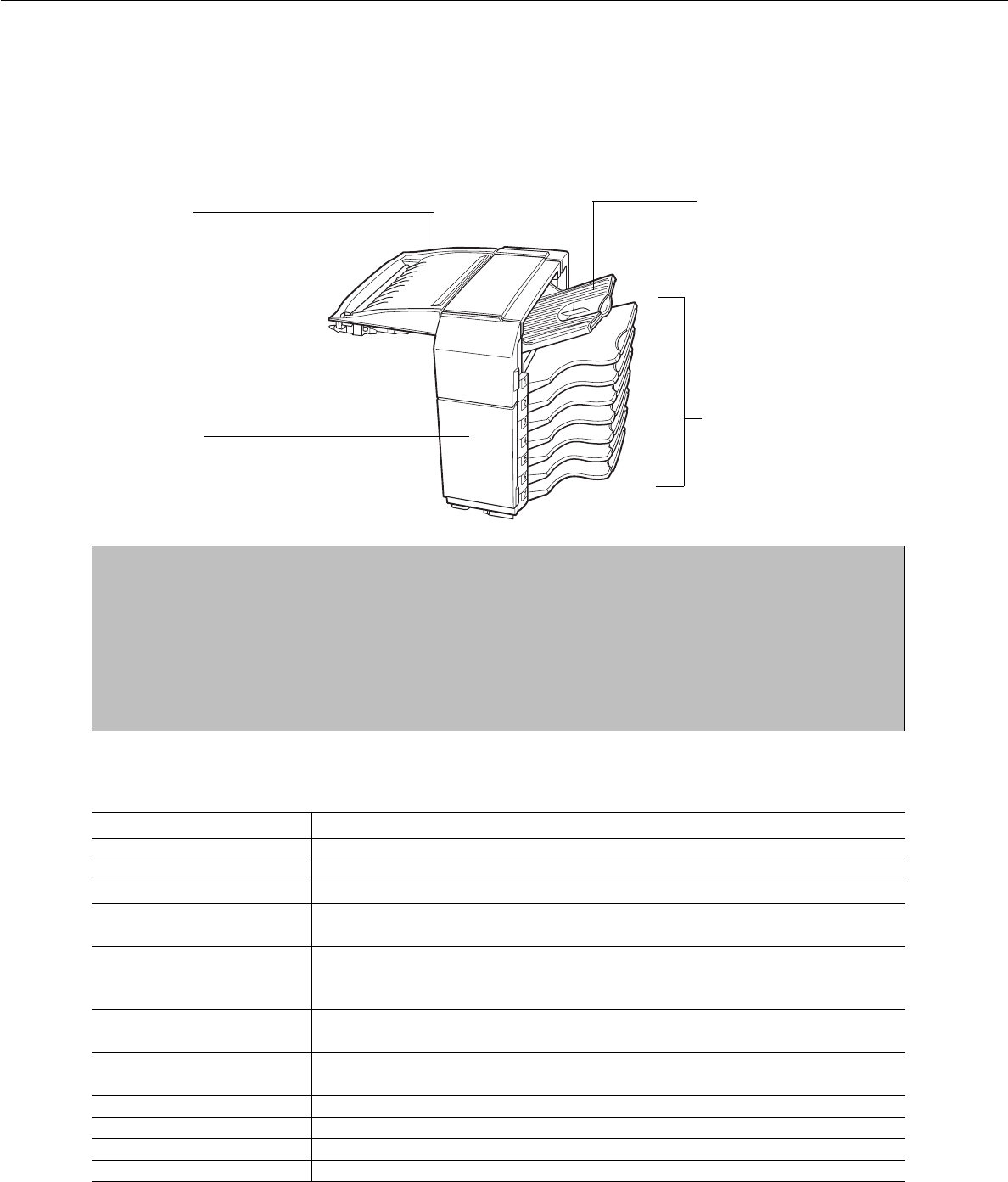 Tray type Top tray: normal tray, Mail bins: mail bin tray