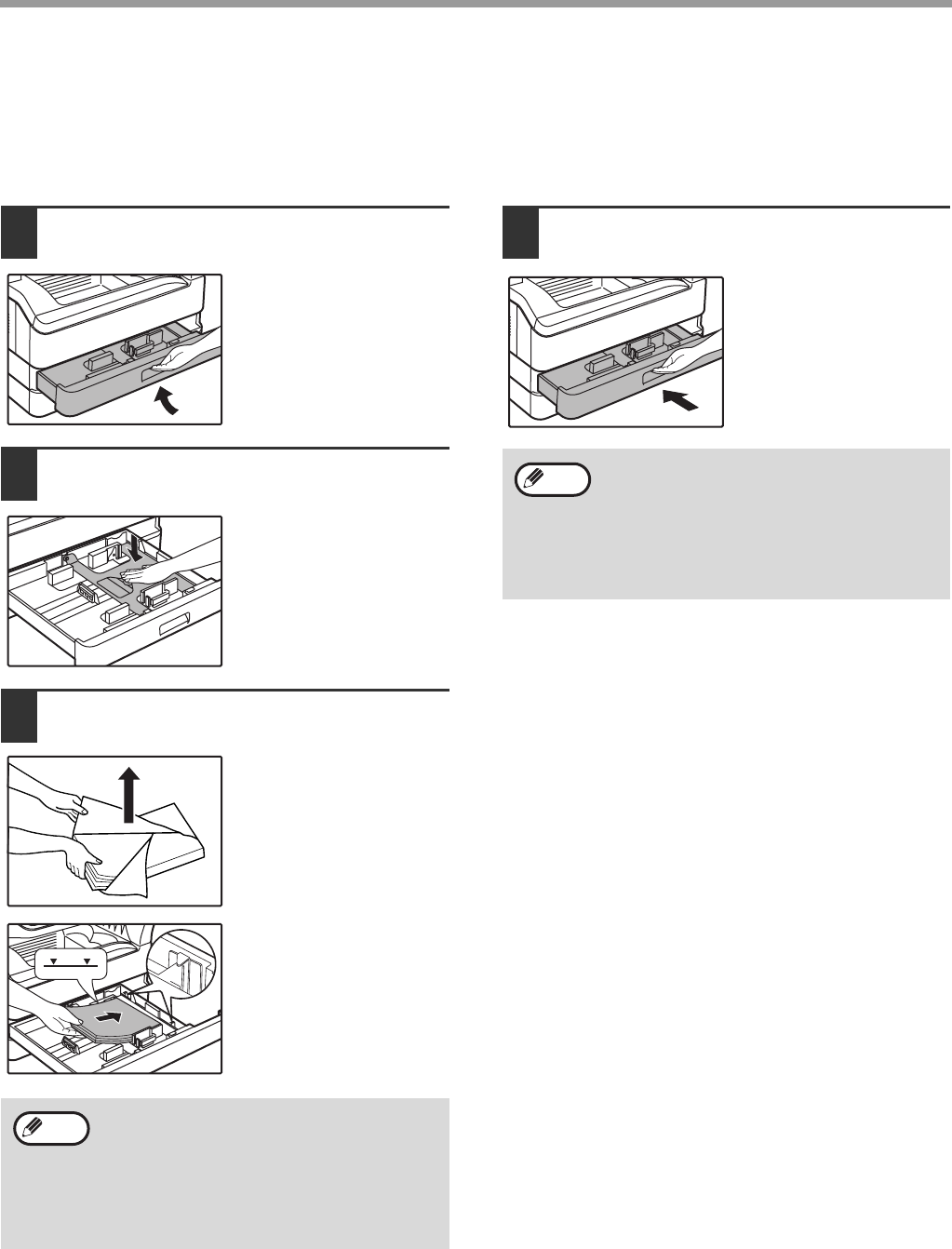 Make sure that the machine is not copying or printing, and then follow these steps to load paper.