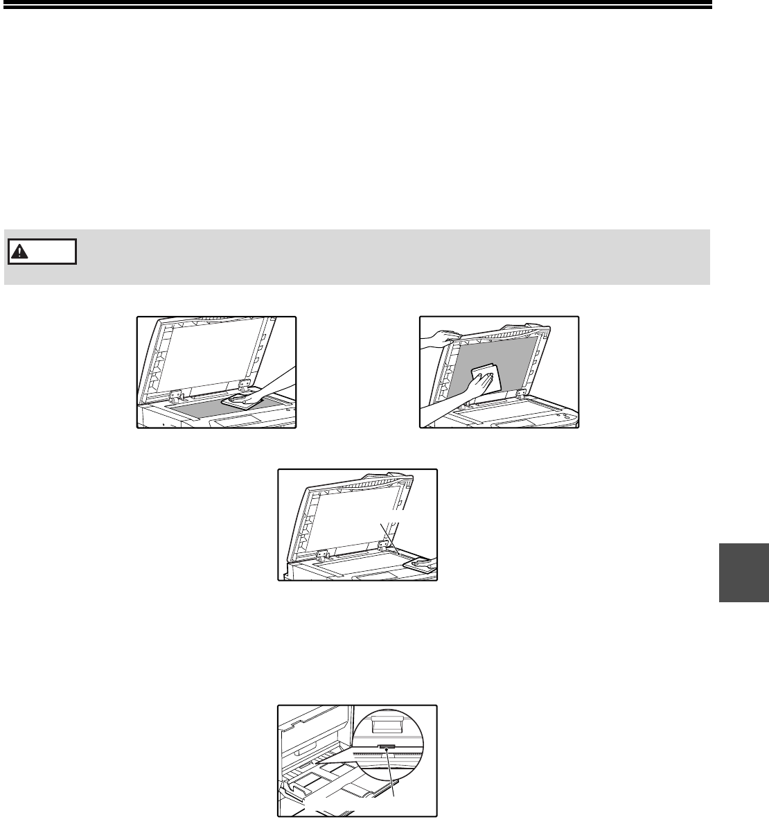 document cover, the RSPF and the scanning window on the document glass with a soft, clean cloth.