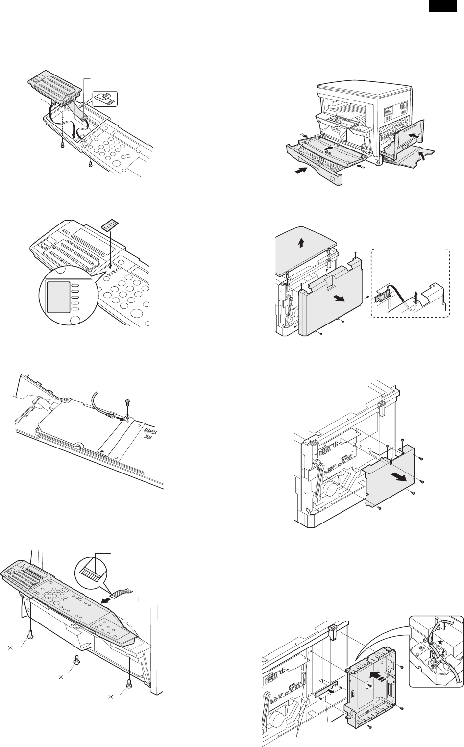 cable under the FAX key unit. Fix the Fax key unit with screws.