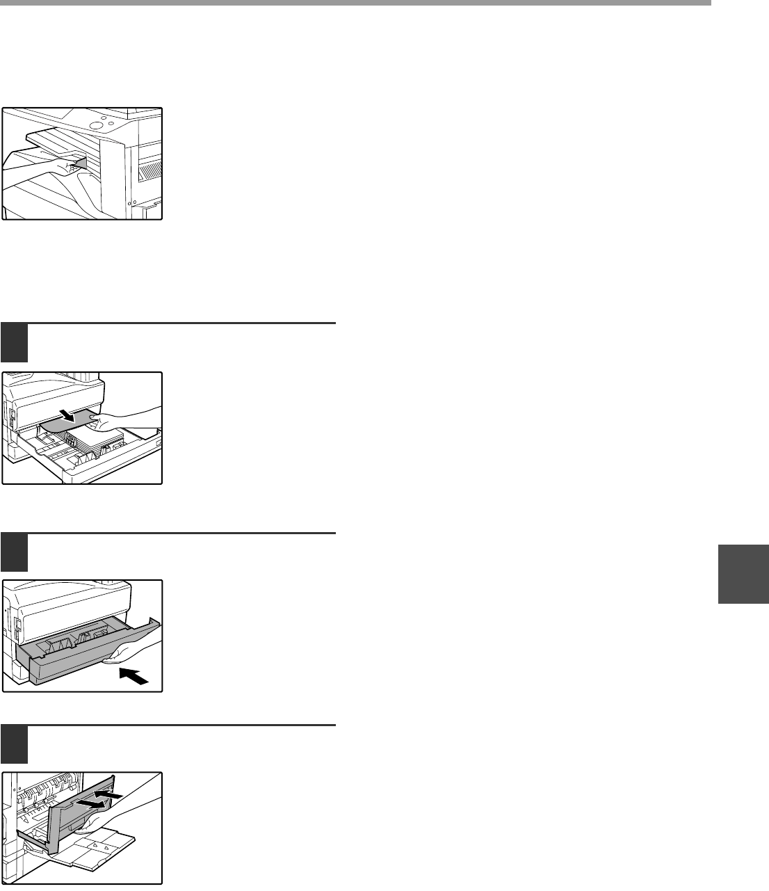 Make sure that there is no misfed paper in the machine before pulling the tray out. (p.67)