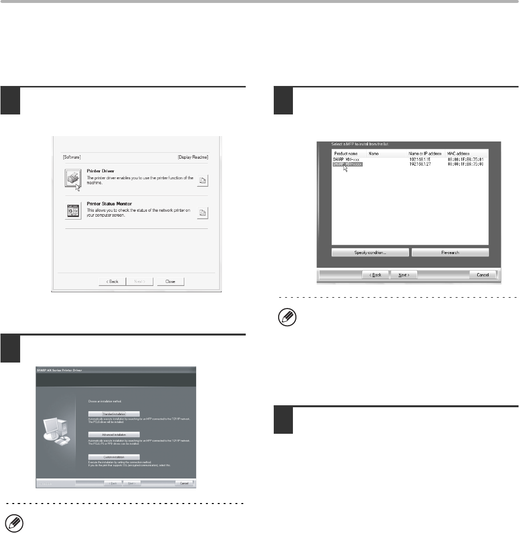 With the advanced installation, you can select the printer driver to be installed.