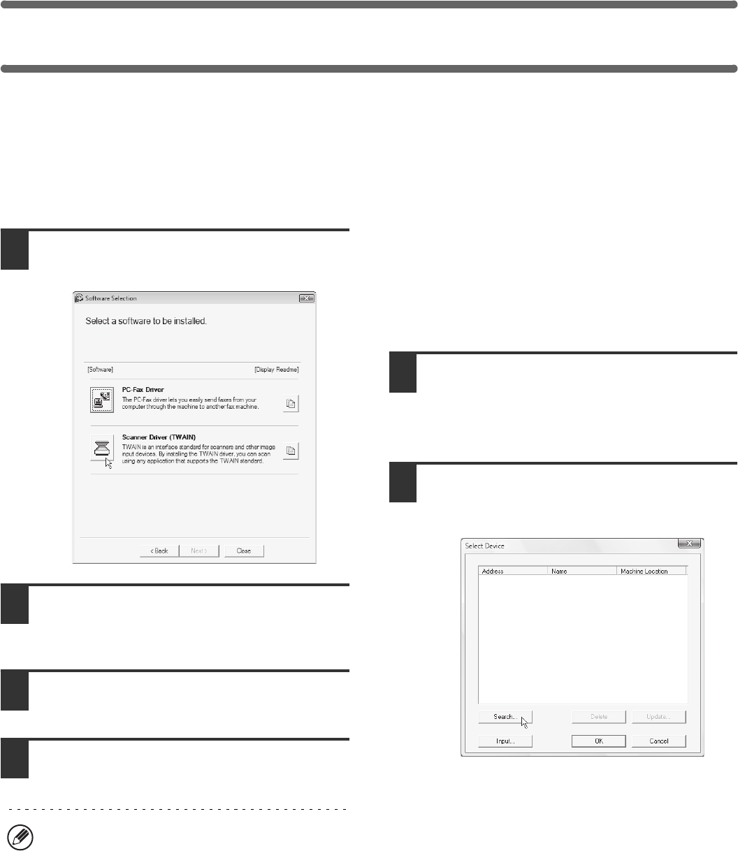 The scanner driver (TWAIN driver) can only be used when the machine is connected to a network. When the scanner