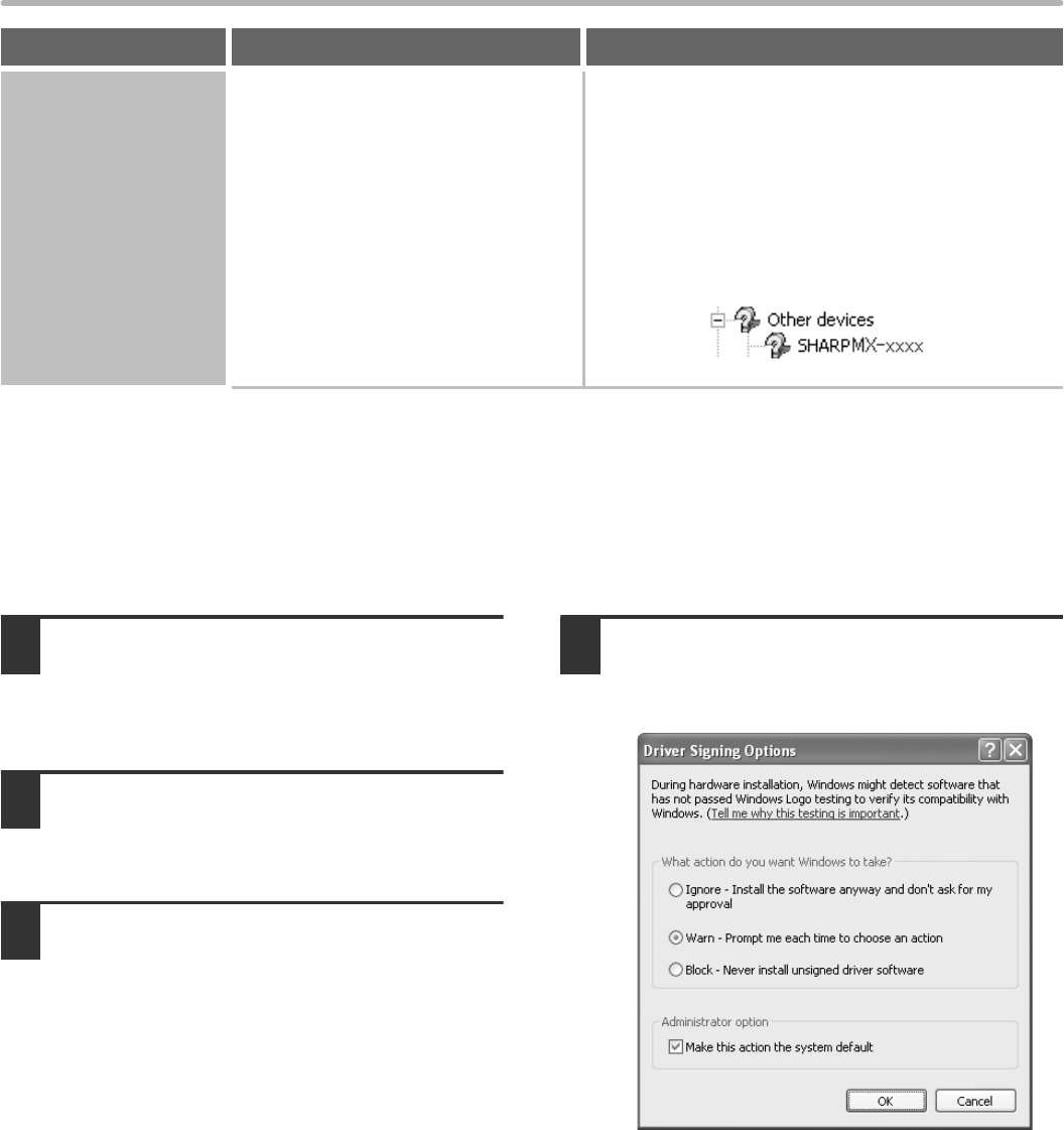 Select [Warn] and install the printer driver again.