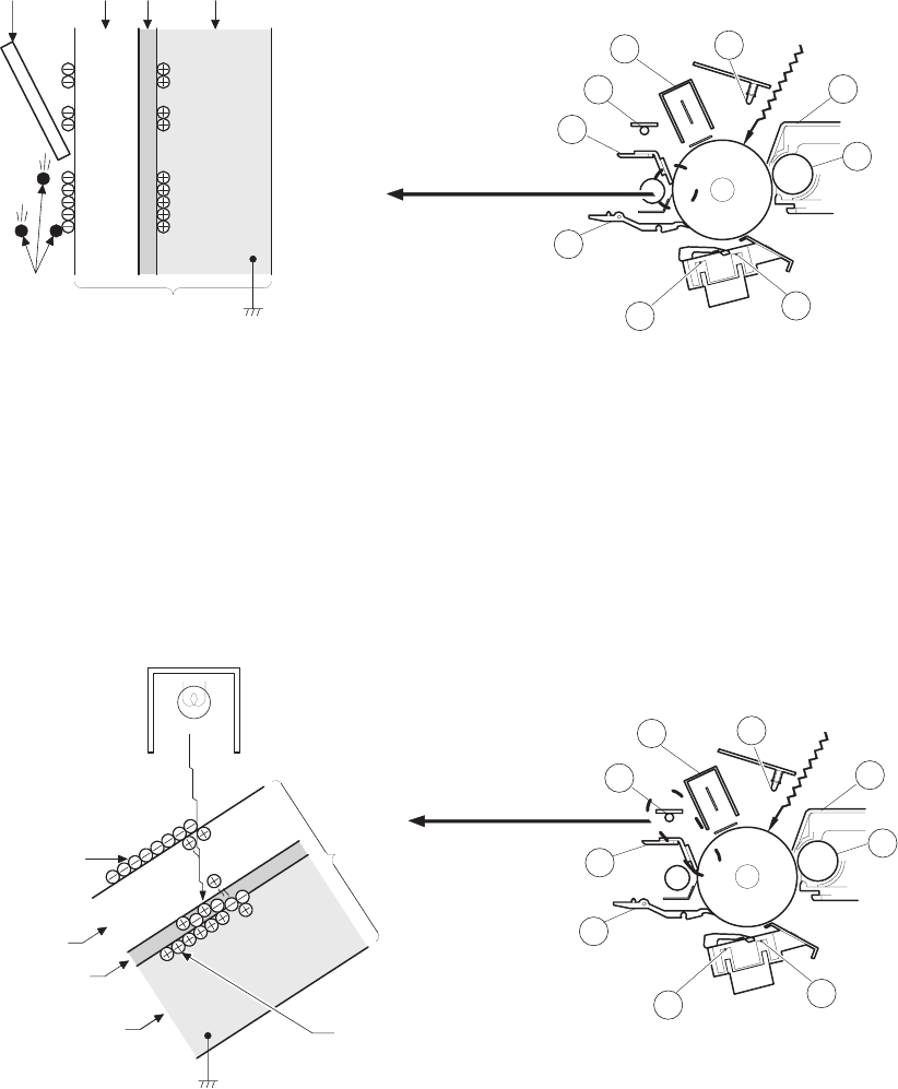 When the OPC drum is exposed to the discharge lamp light, positive