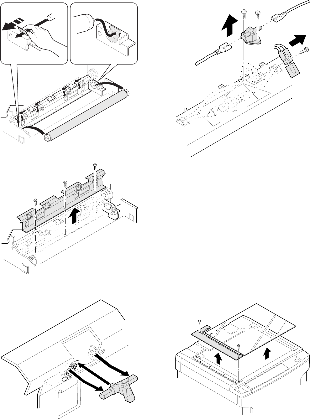 1 Remove the OR guide, and remove the table glass. (2 screws)