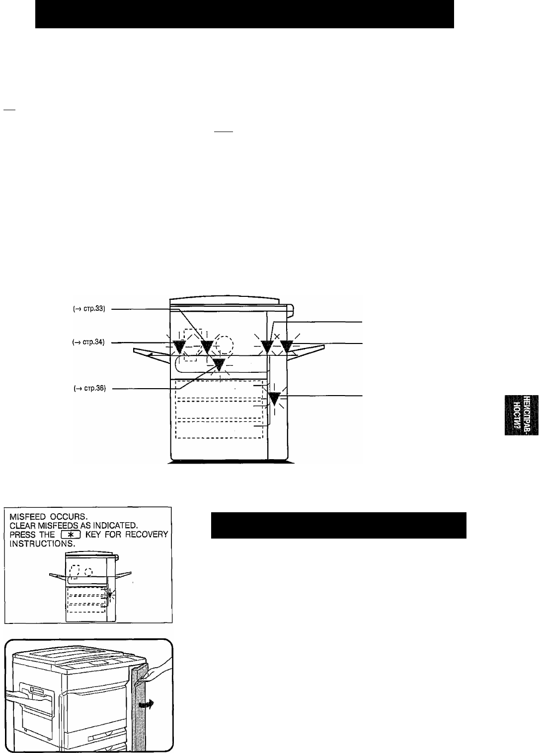 На дисплее появится надпись ^‘MISFEED OCCURS.