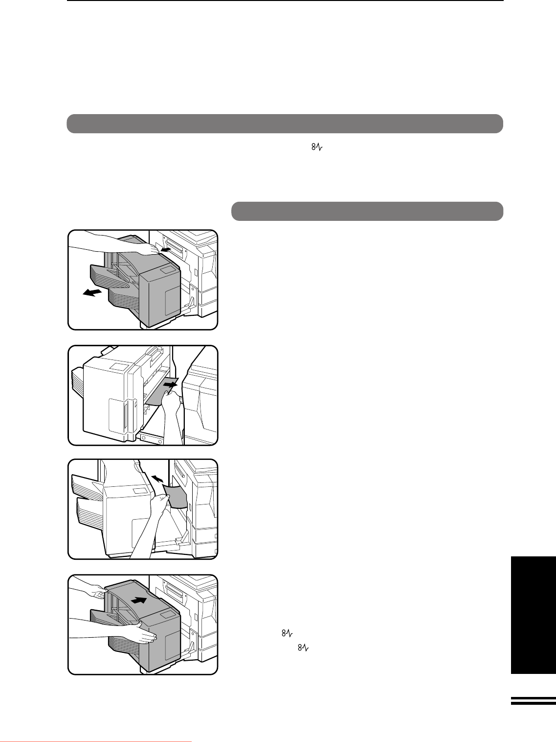 The copier will stop when a misfeed occurs. The misfeed ( )