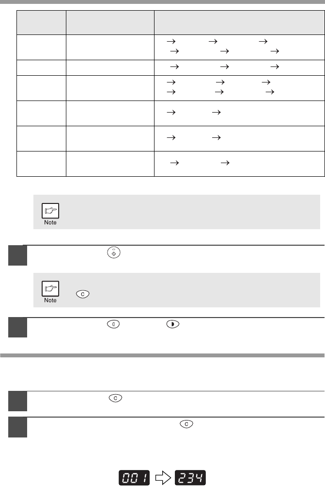 To change the setting or to set another mode, press the clear
