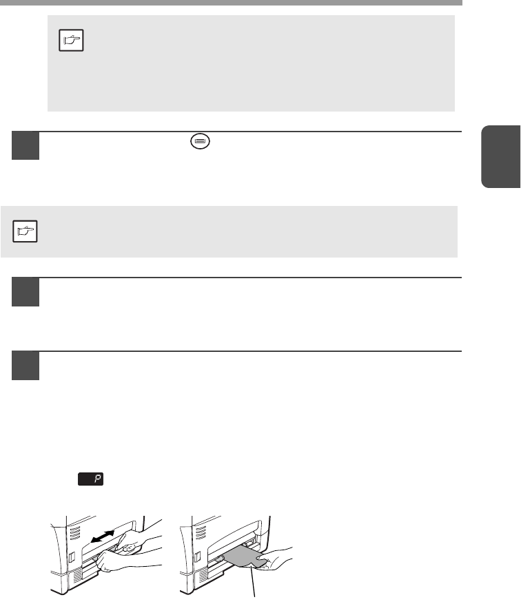 Press the tray select ( ) key to select the multi-bypass tray.