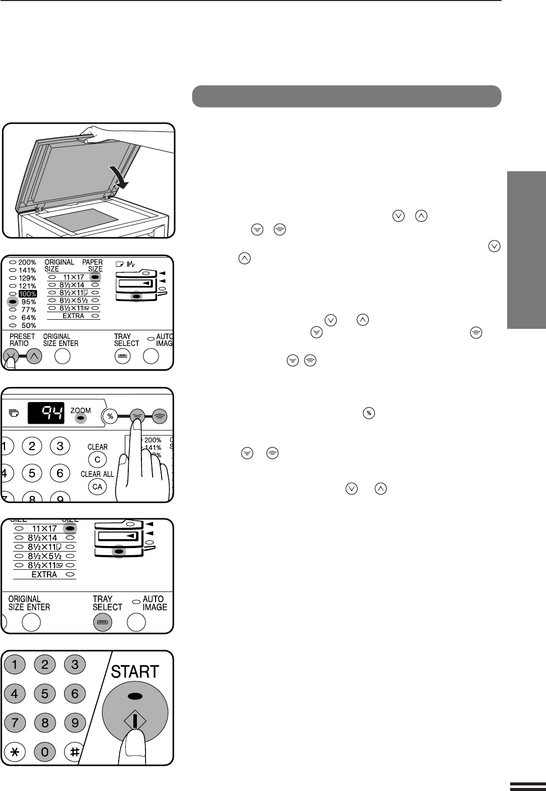zoom ( , ) keys to select the desired copy ratio.