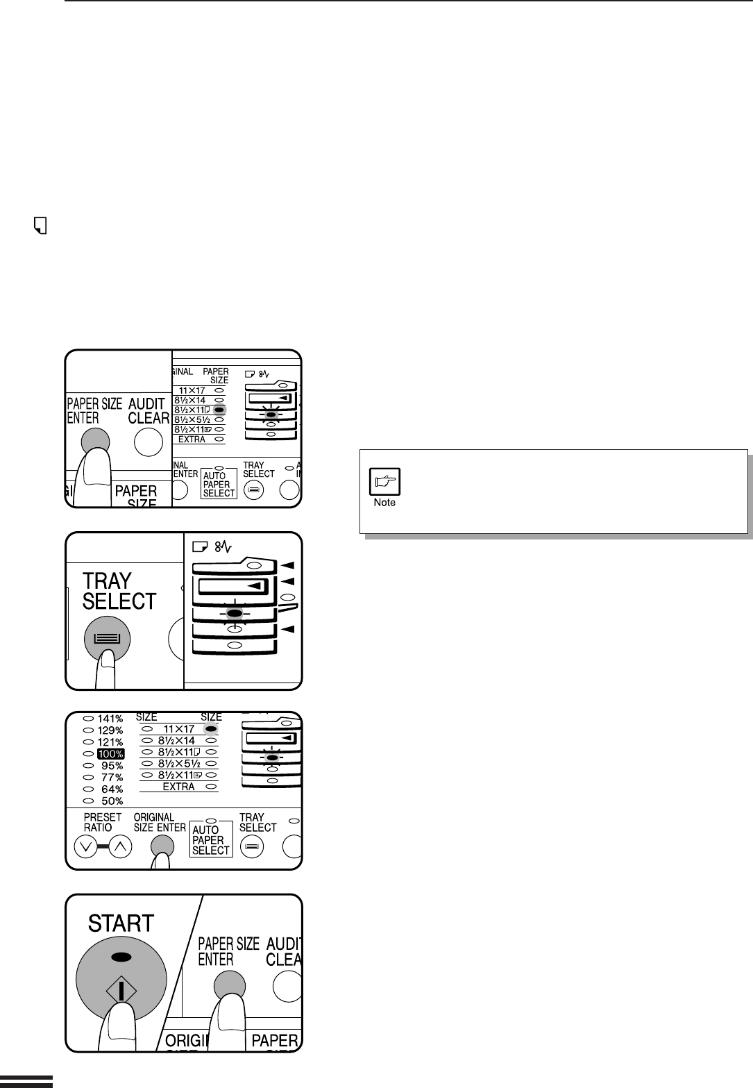 Press the START key and then the PAPER SIZE ENTER