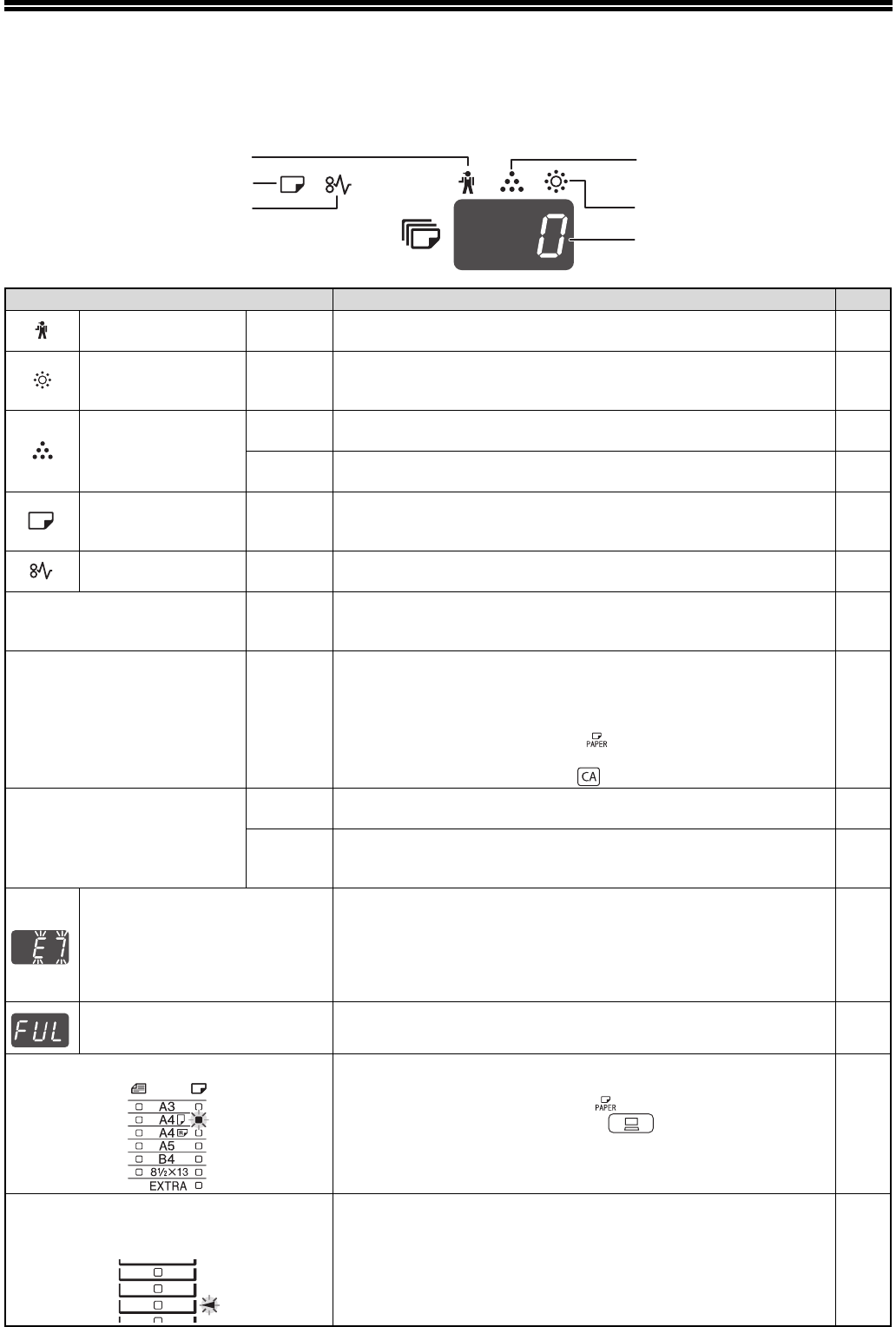 If one of the following indicators lights up or one of the following messages appears in the display, check the