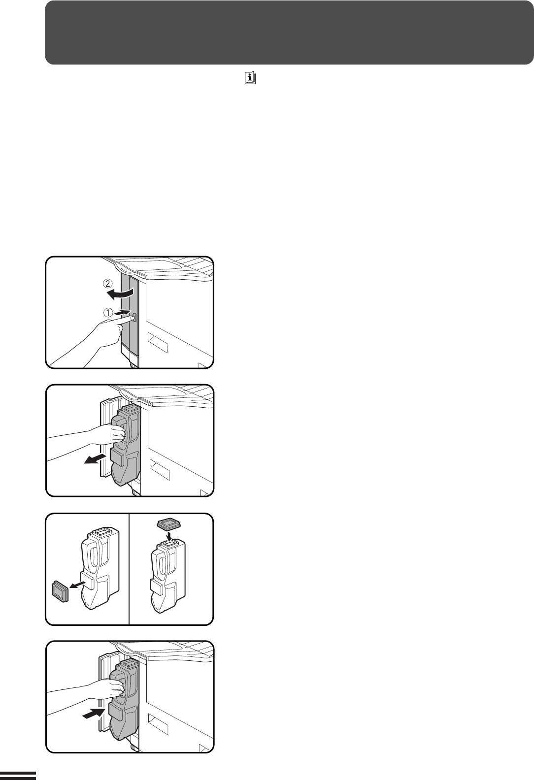 “REPLACE USED TONER CONTAINER. PRESS FOR GUIDANCE.”