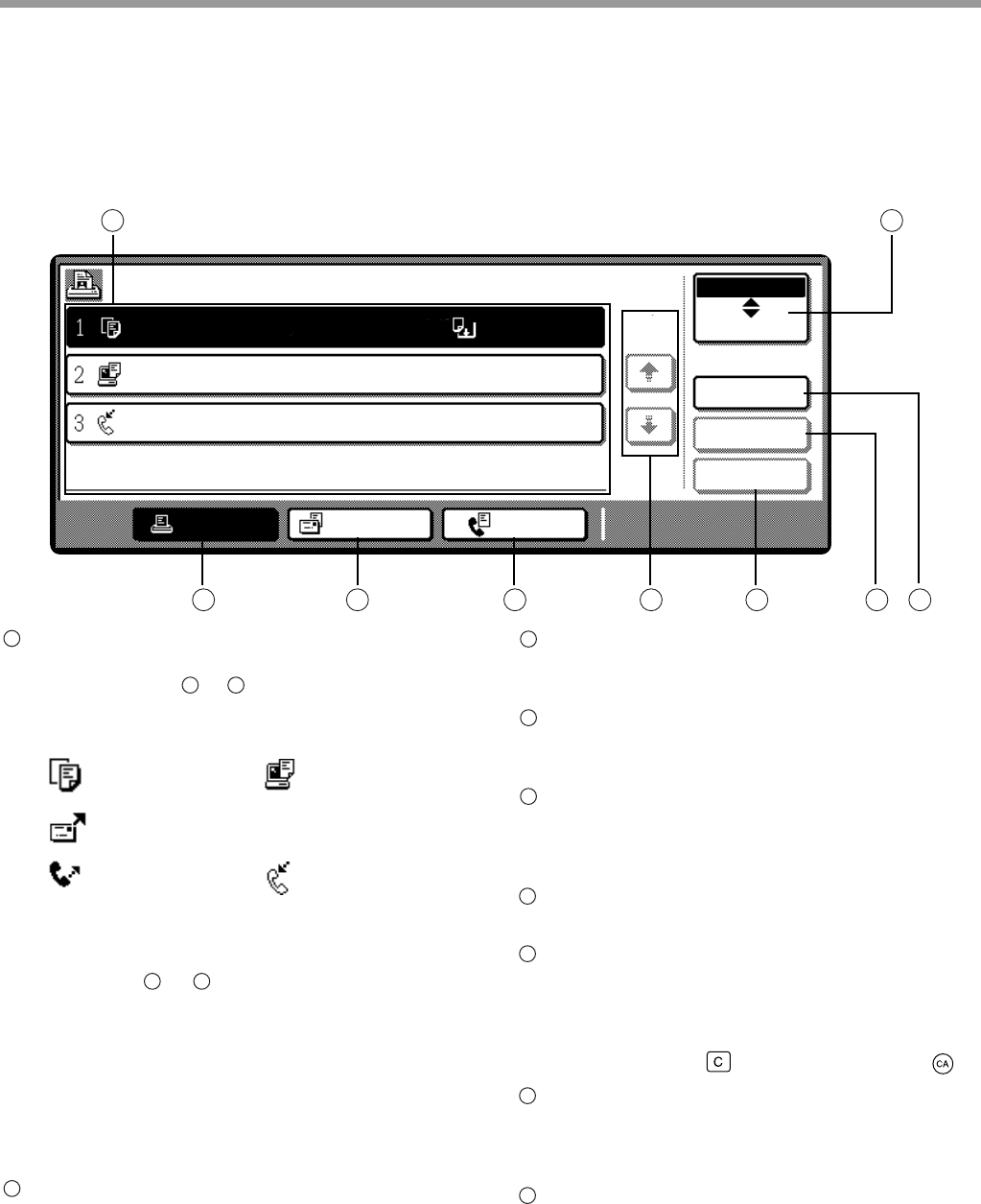 This screen appears when the [JOB STATUS] key on the operation panel is pressed.