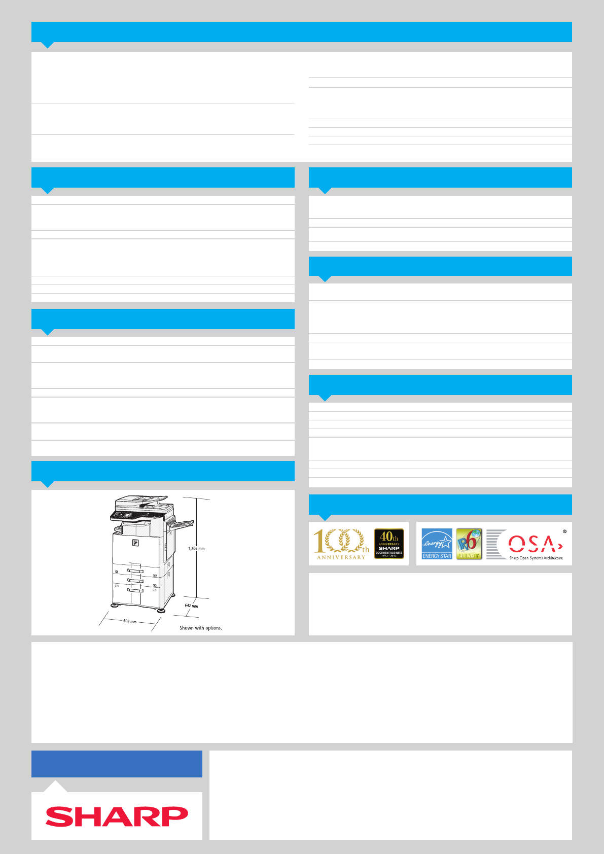 Measured using Sharp’s standard chart (A4 with 6% coverage, B/W). The Quick Folder shares memory with the Job Build function; The storage capacity will be less for colour pages.