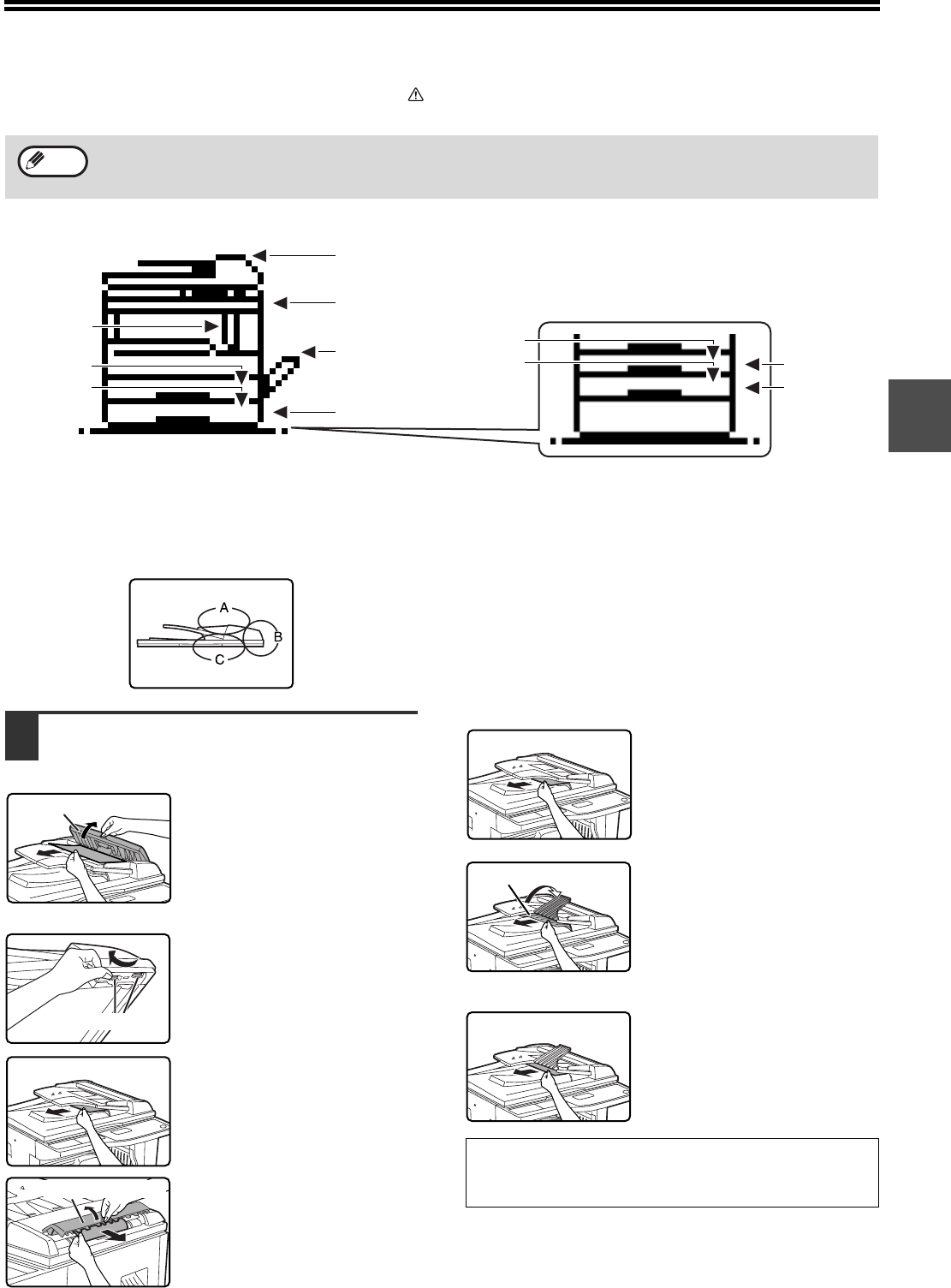 If an original misfeeds in the SPF, follow the steps below to remove the misfed original.
