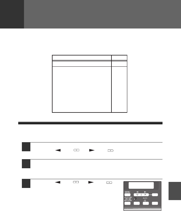 Press the [ ] key ( ) or [ ] key ( ) to