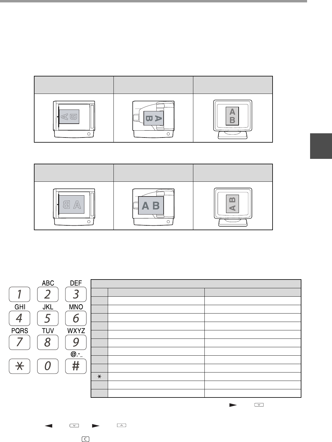 followed by letters in the order marked above the key). The keys used for entering characters are shown below.