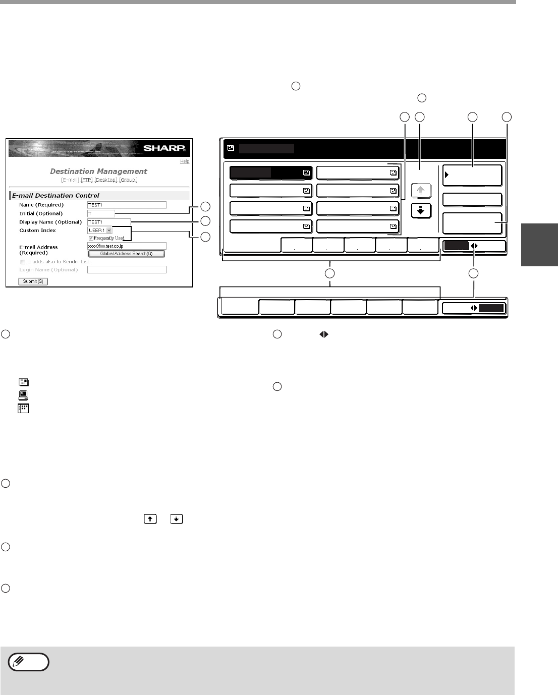 each destination, and the name entered in "Display Name" is displayed in the one-touch key ( ).