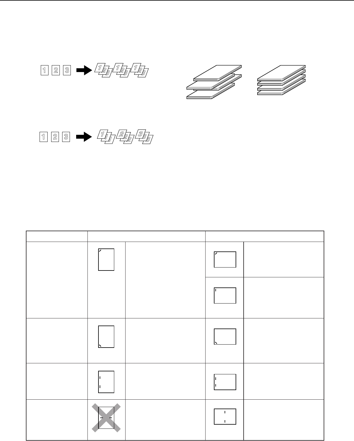 finisher). The relations between possible stapling positions, the paper feed direction, paper sizes that can be