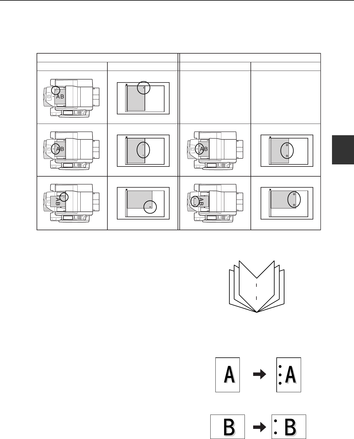 When using the staple sort or punch function, the original must be placed in the following orientations to enable