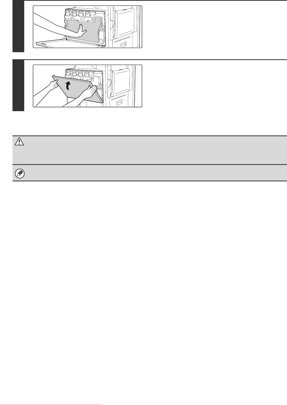 When replacing the waste toner box, be aware that it may soil your clothes or the place where you remove it.