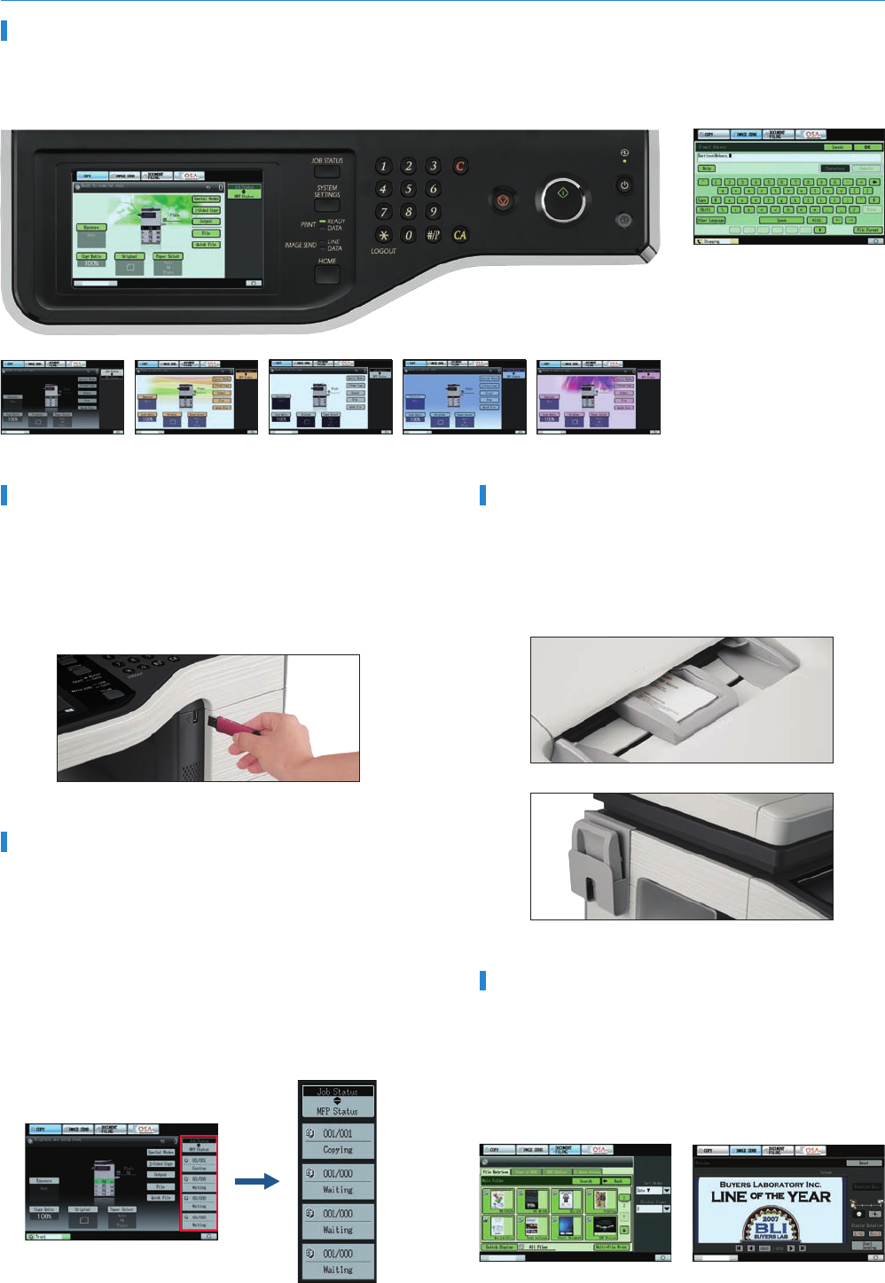 The MX-B382’s logically designed control panel features a wide, clear, W-VGA-resolution touch-screen LCD with a choice of six screen colours.