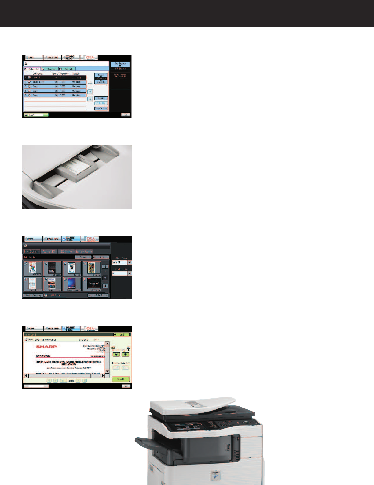 To make managing all of your stored jobs simple, the MX-B402 color touch-screen display offers