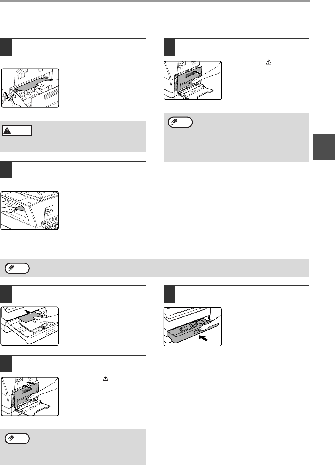 Make sure that there is no misfed paper in the tray before pulling it out. (Page 31)