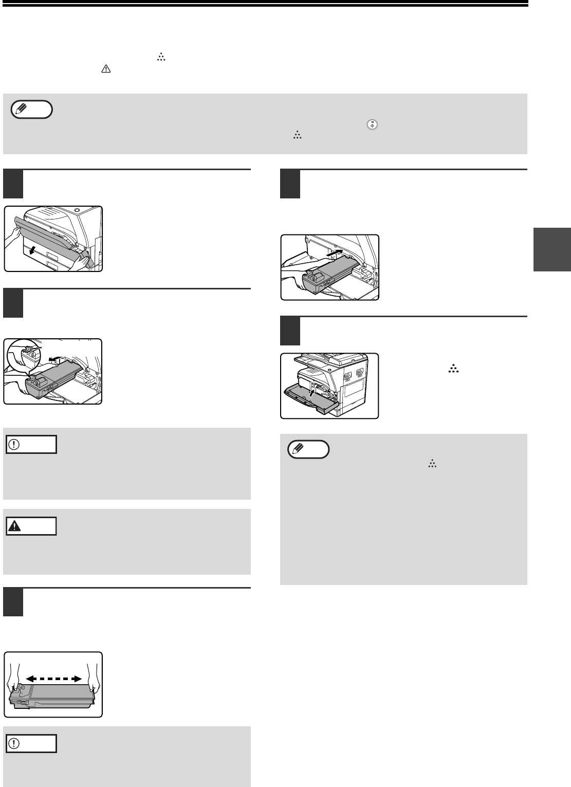 replaced before copying can be resumed. Follow the steps below to replace the toner cartridge.