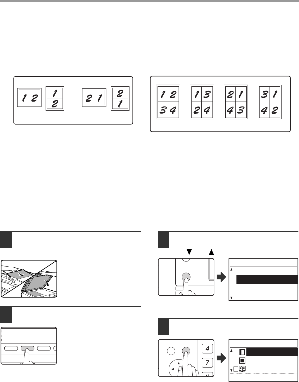 Multiple originals can be copied onto a single sheet of paper in a selected layout pattern.