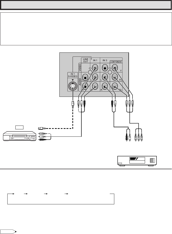 • The S-Video terminal has priority over the VIDEO terminal (IN 1). When you wish to use video