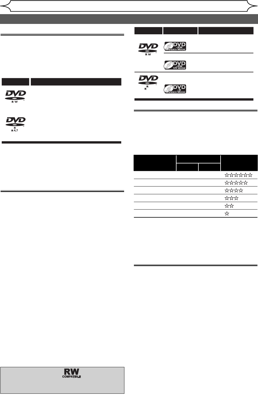 • Discs that should or should not be used with this