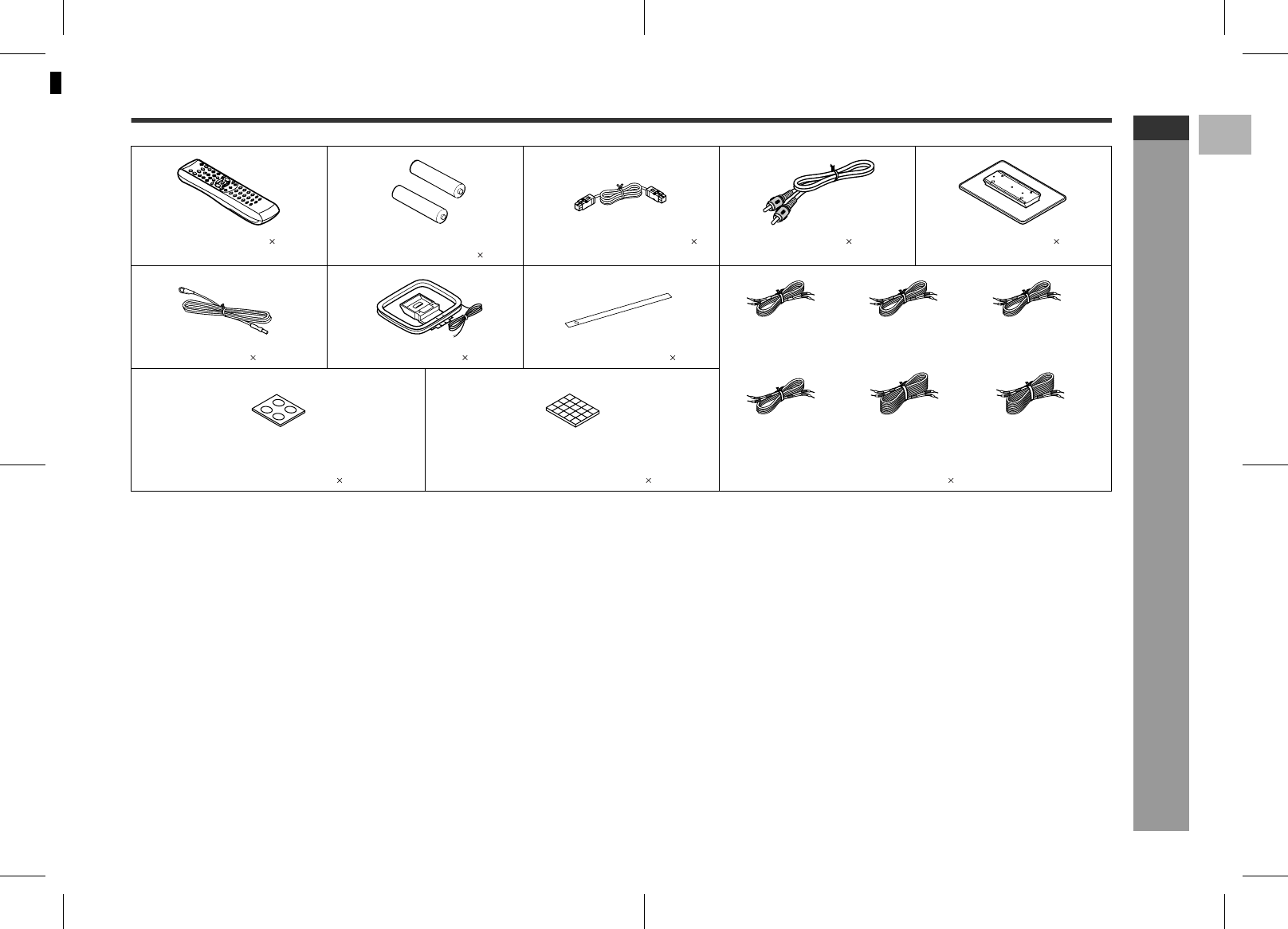 Main unit leg cushion 4 Non-slip sheet for speakers 20 Speaker wire 6