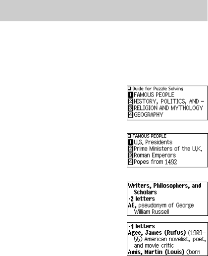 answers arranged by category.