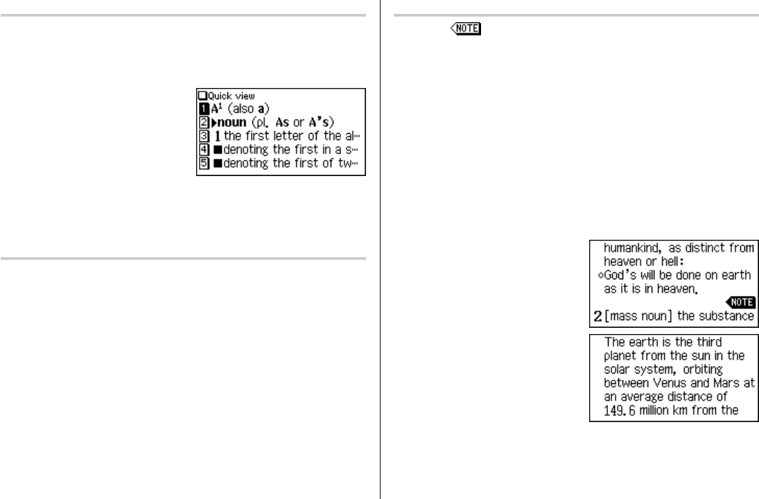 The Quick View function suppresses some examples and additional information,