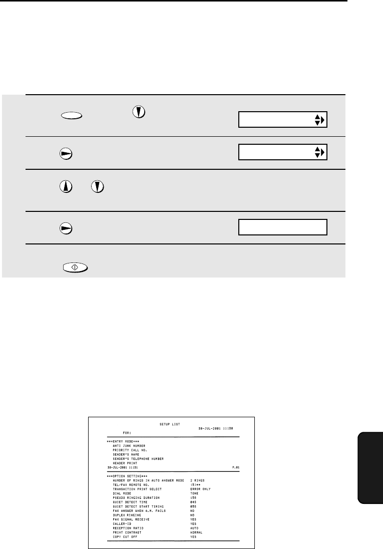 You can print out lists showing settings and information entered in the fax