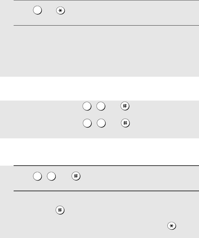 1 Press , , and on the telephone.