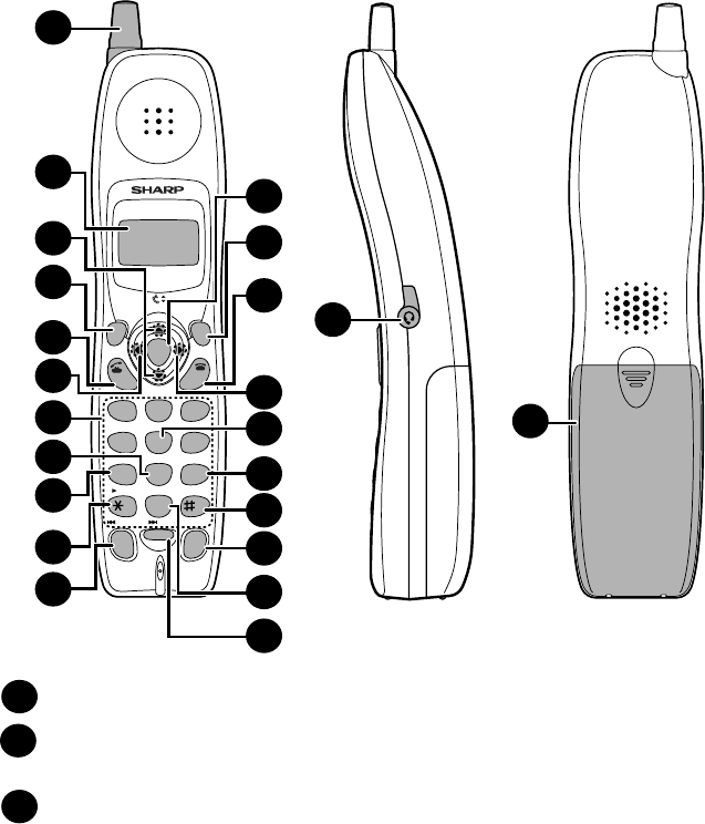 This displays messages and prompts to help you use the cordless handset.