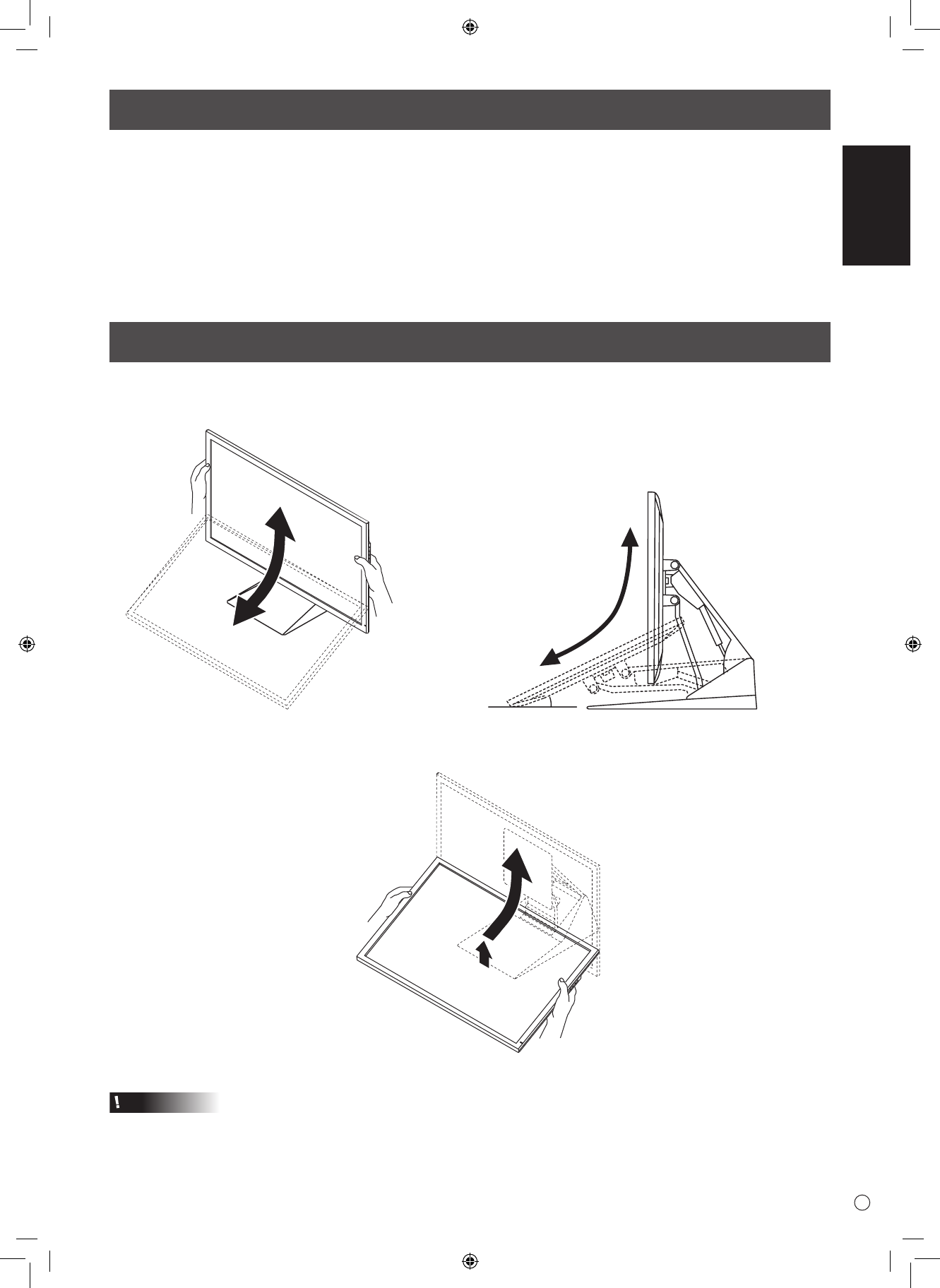 • When sliding the monitor, be sure to grasp only the frame on the left and right sides.