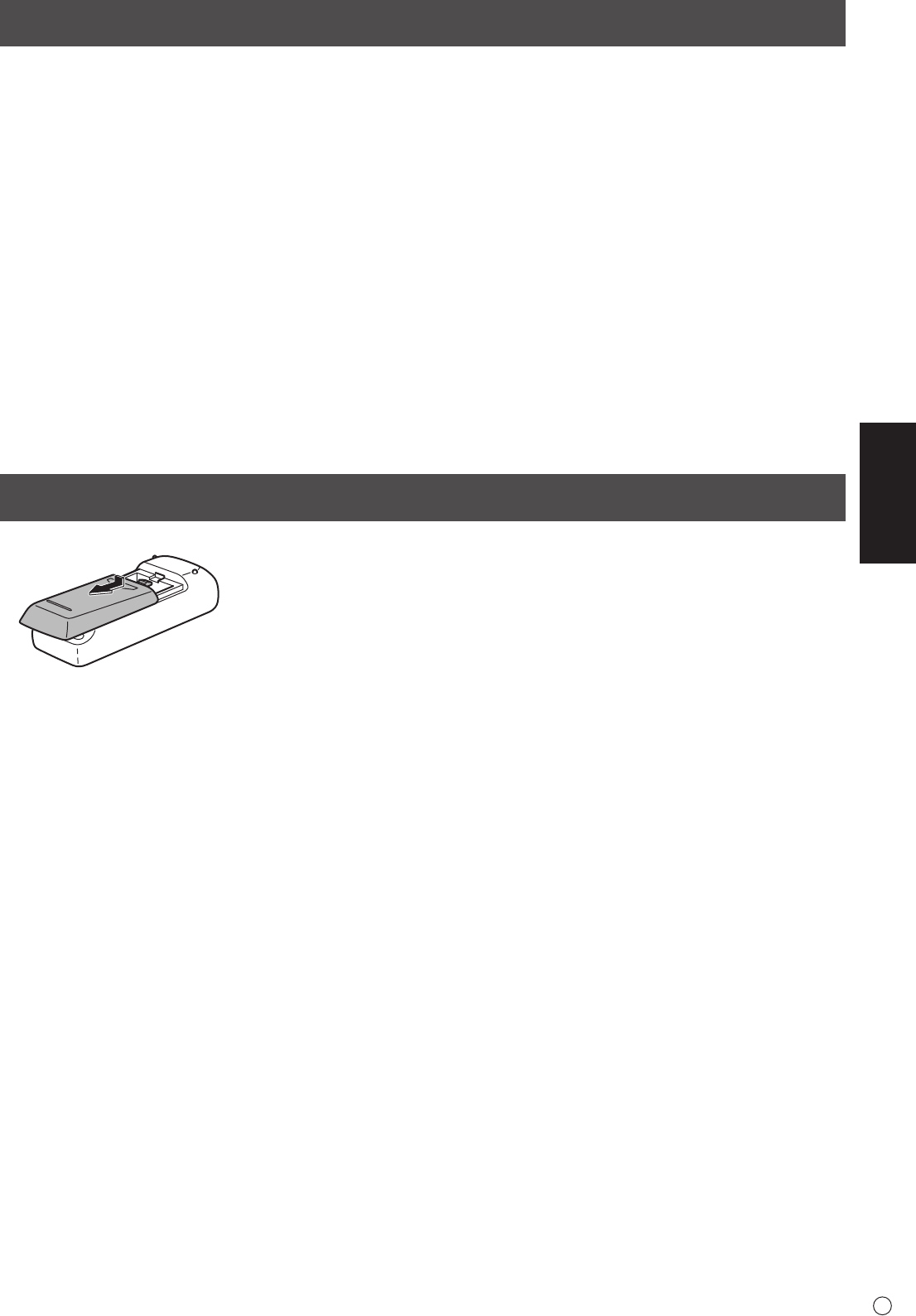 2. Consulte las indicaciones del compartimento y coloque las pilas suministradas (R-6 (tamaño “AA”) x 2) con la polaridad (+) y (-)