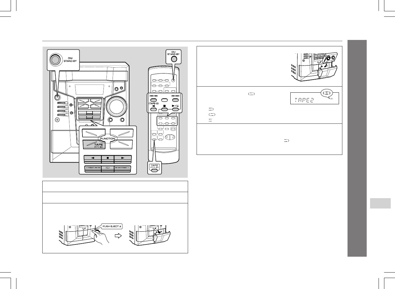 2 Нажмите кнопку TAPE (1 V 2), для выбора TAPE 2.