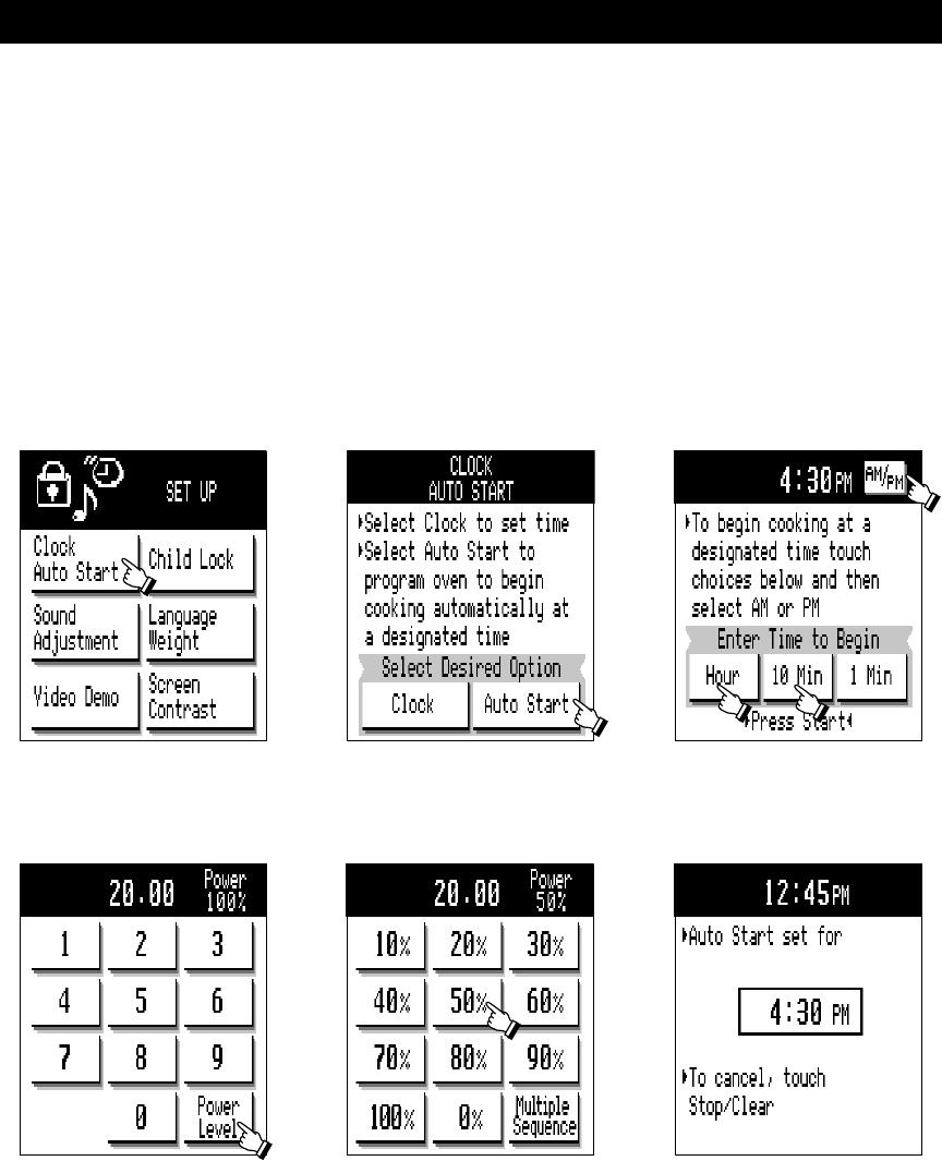 • Suppose you want to start cooking a stew for 20 minutes on 50% power at 4:30 P.M. Before setting, check to